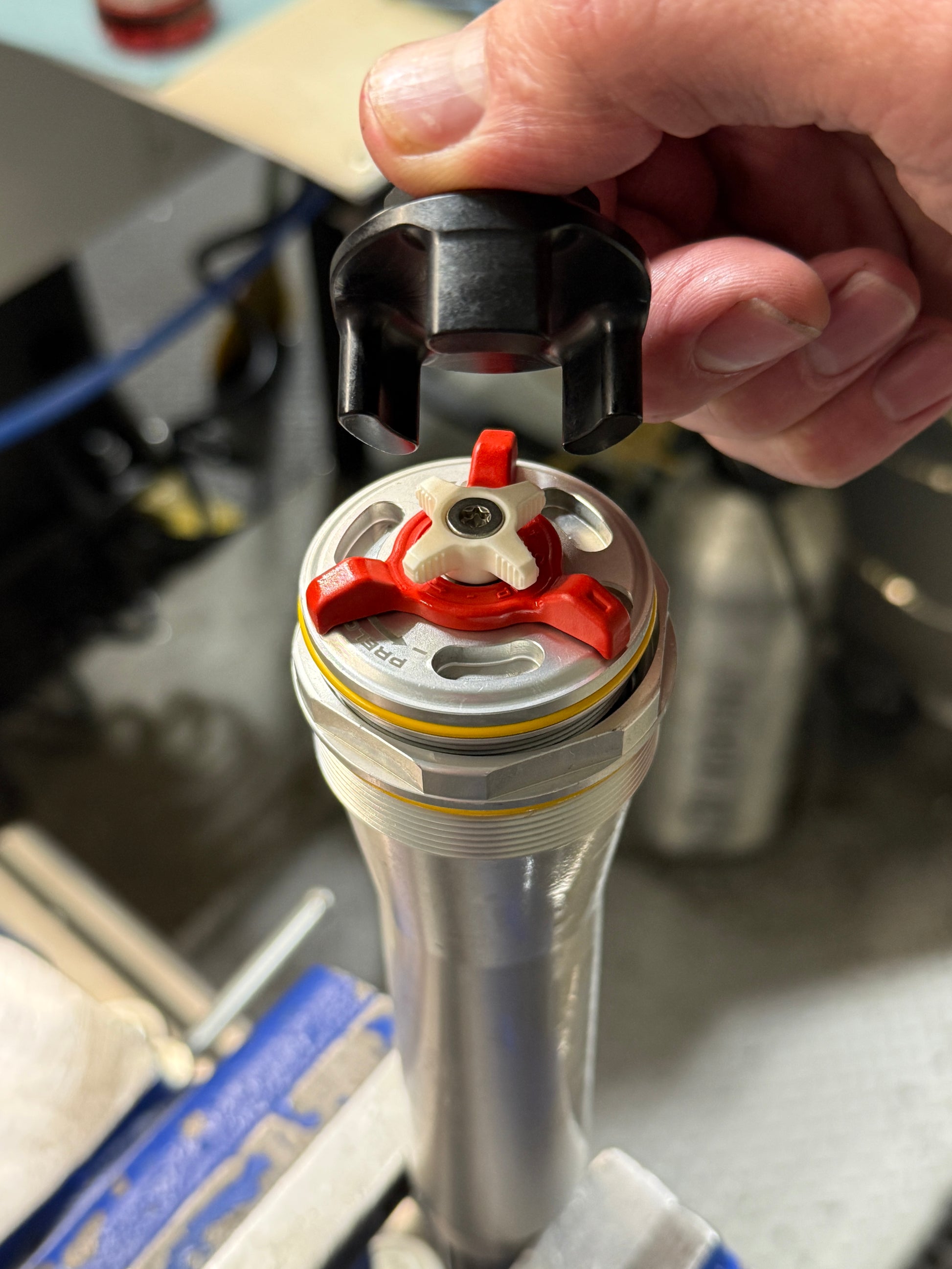 Precision machined from 6061 billet aluminum, black anodized and laser engraved, this tool will save time, complexity and frustration when trying to service the new 2025 WP CC fork with preload adjusters.