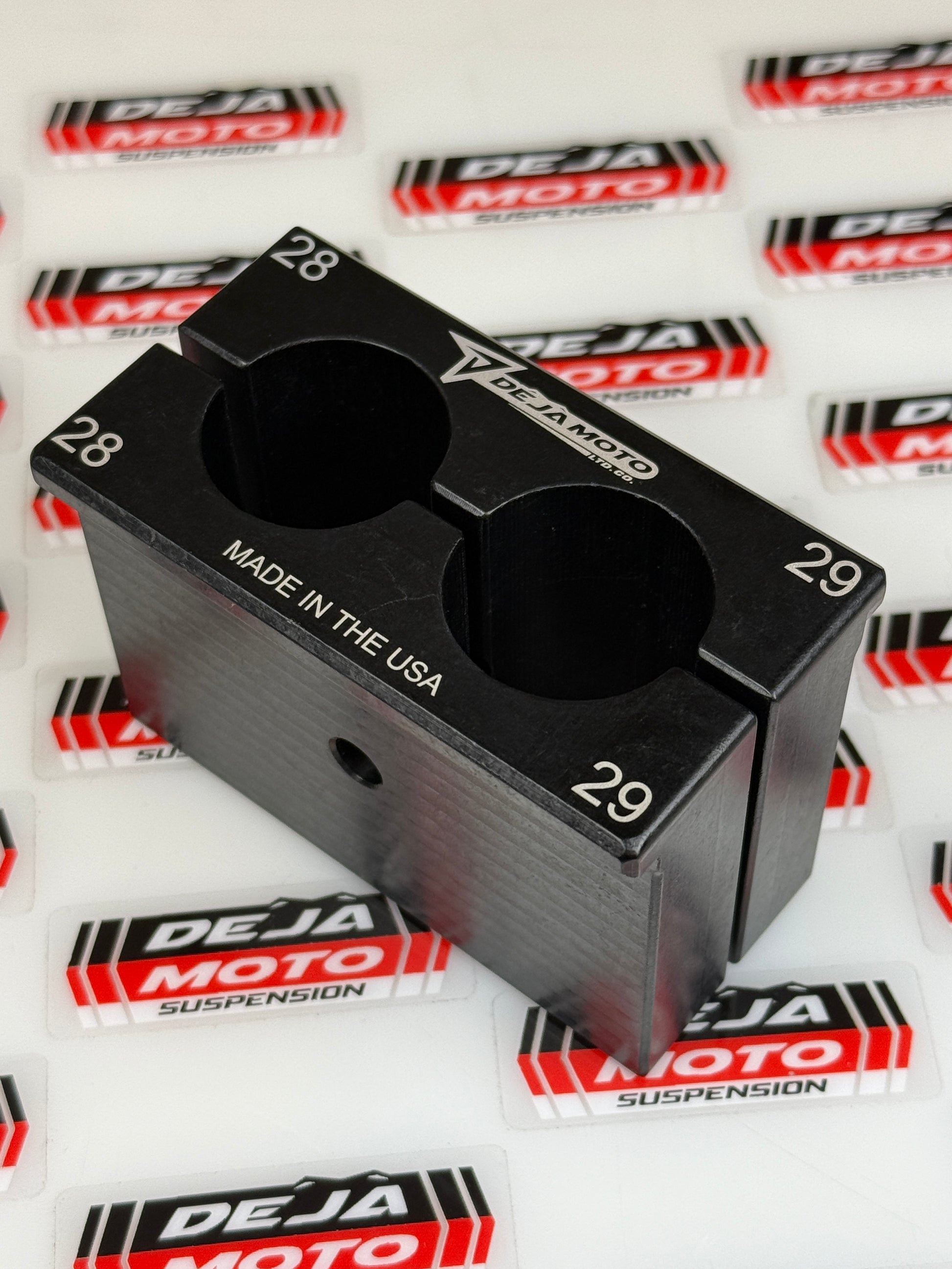 This clamp set will fit all 2006-current KYB SSS fork cartridge cylinders that have either 28mm or 29mm cartridge tubes, as well as the Showa 28 & 29mm cartridge tubes