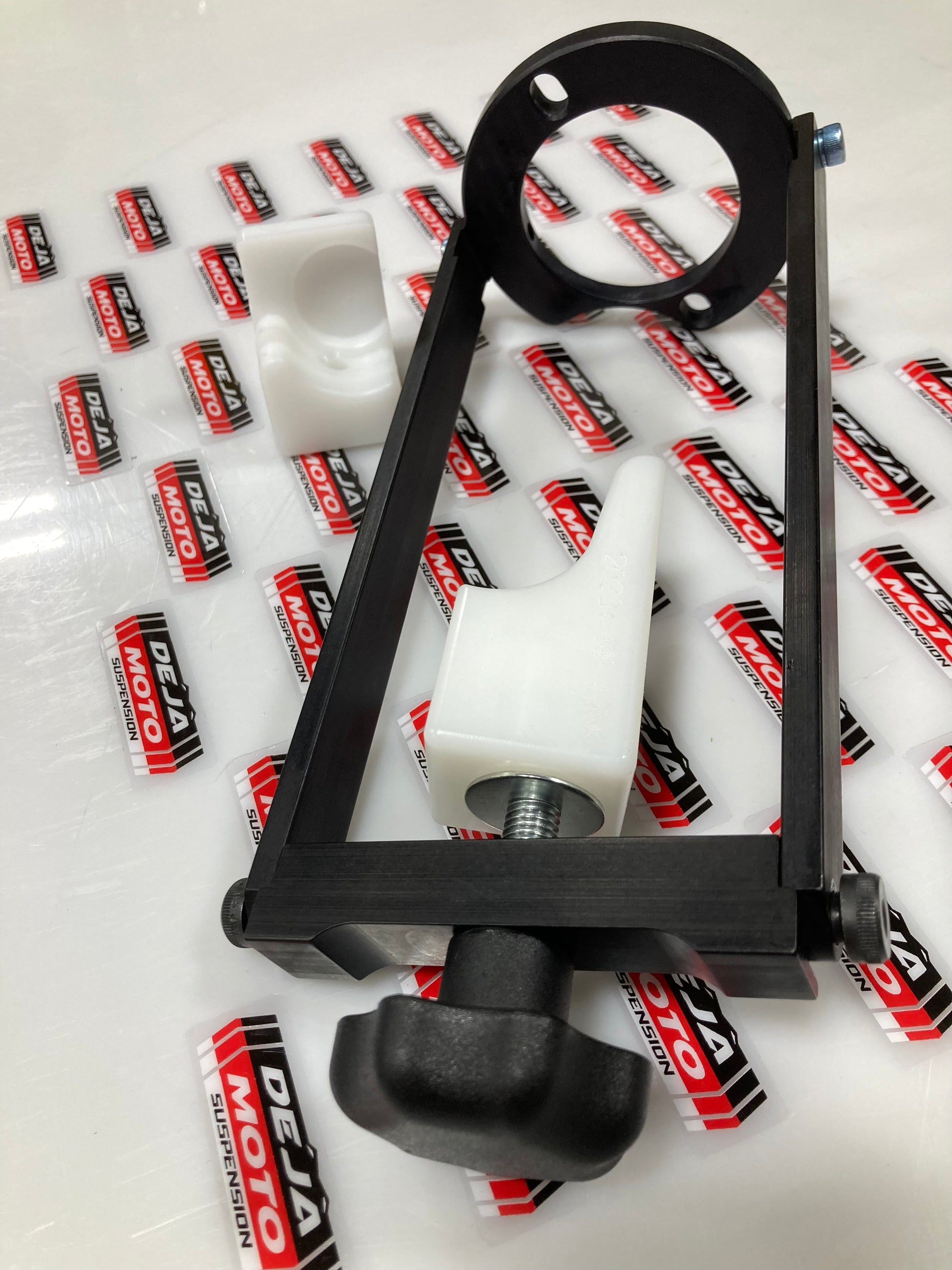 This tool adapts the Race Tech TNSC 02 nitrogen charging tool so it can be used on the new 2023+ WP linkage shocks. Included is a clamp block to quickly change the tool back to the previous 2016-2022 WP linkage shock. An added benefit, the spring preload collar no longer needs to be moved out of the way to charge the reservoir. Fast and easy!